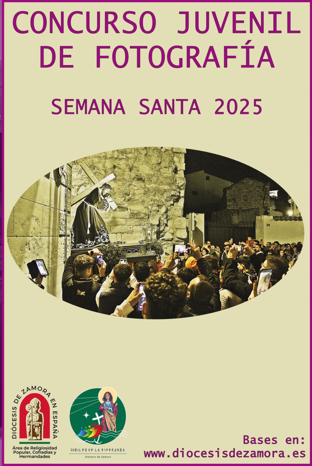 El área de Religiosidad popular, cofradías y hermandades de la Diócesis de Zamora invita a participar en este PRIMER CONCURSO DE FOTOGRAFIA COFRADE JOVEN, a cualquier cofrade de la Diócesis de Zamora, sea cual sea su residencia, con la excepción del jurado y el grupo coordinador del área. La edad de los concursantes no podrá sobrepasar los 35 años.